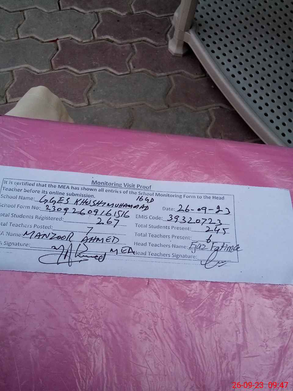 | EMIS Code: 39320723 | Name of School: GGES KHUSHI MUHAMMAD 16/G.D | |||