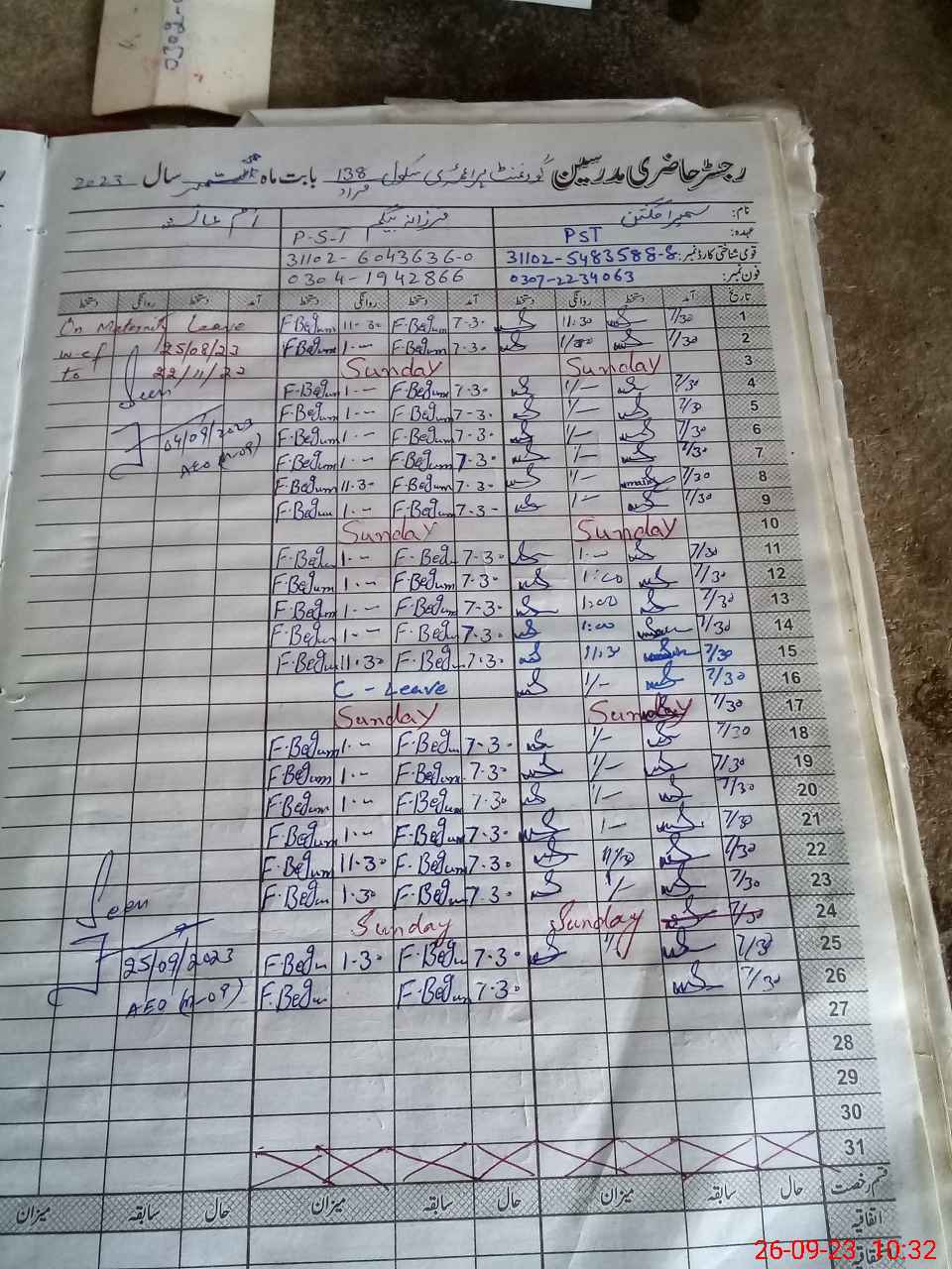 | Name: Su**** Gu**** Designation: (School Headmaster's/Headmistress's) PST Phone/Cell Number: 03**** |