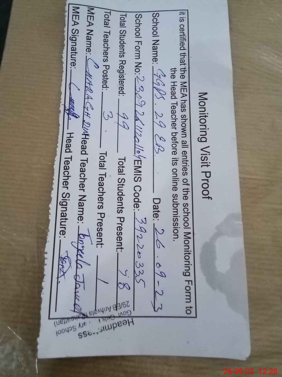 | EMIS Code: 39220335 | Name of School: GGPS 29 EB P.O. 19 EB | |||