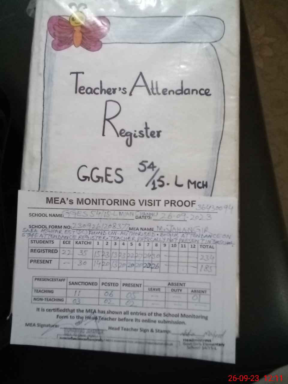 | Attendance Register | Head Teacher | MEA with School | Visit Proof |