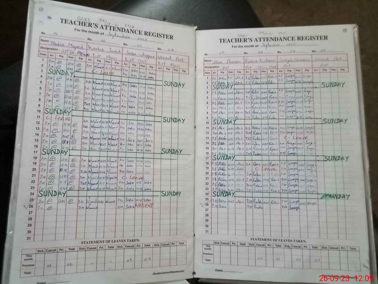 | 36**** | Sa**** As**** | 1 | 2 | 0 | 0 | 0 | 0 | 0 | 0 | 0 | 2 | Absent (Un-Authorized) | |