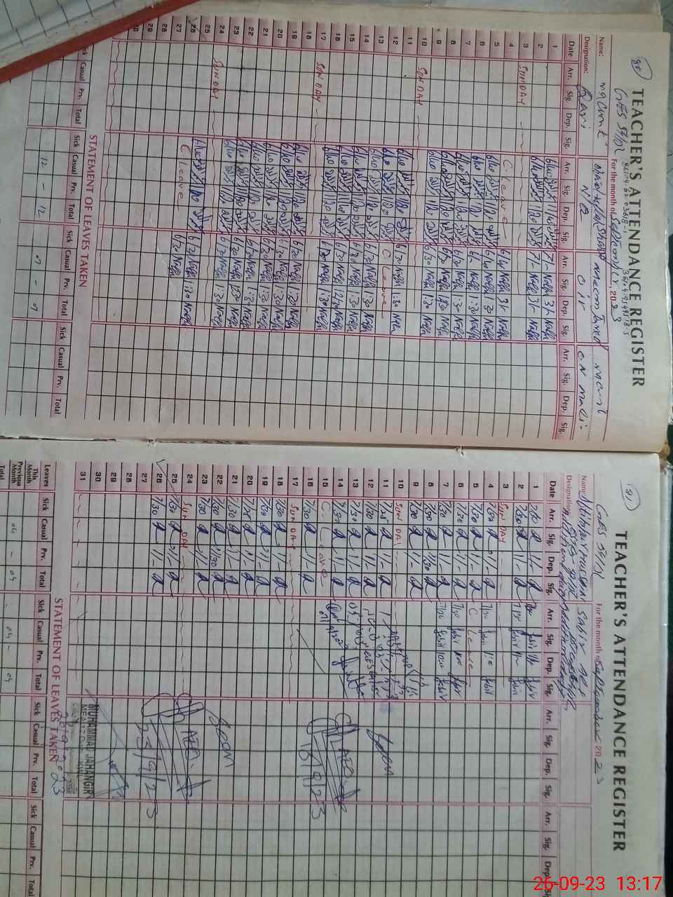 | Monitoring Date: 26-09-2023 | Start Time: 26-09-2023 12:17 PM | End Time: 26-09-2023 01:20 PM | Name of MEA: Mu**** Ja**** | |