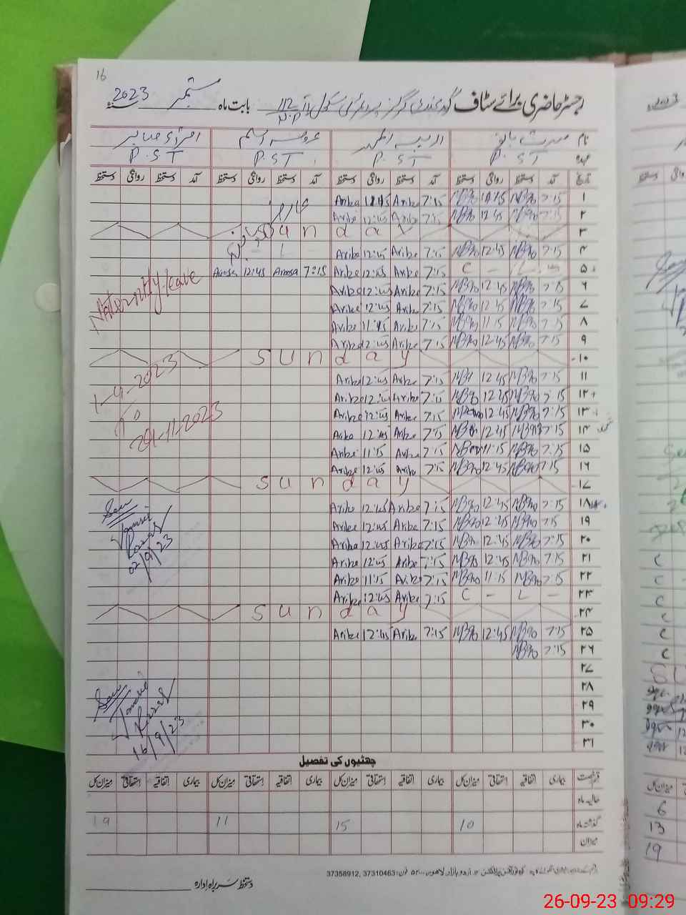 | 31**** | Ar**** As**** | 1 | 0 | 7 | 0 | 0 | 0 | 0 | 0 | 0 | 0 | Absent (Un-Authorized) | |