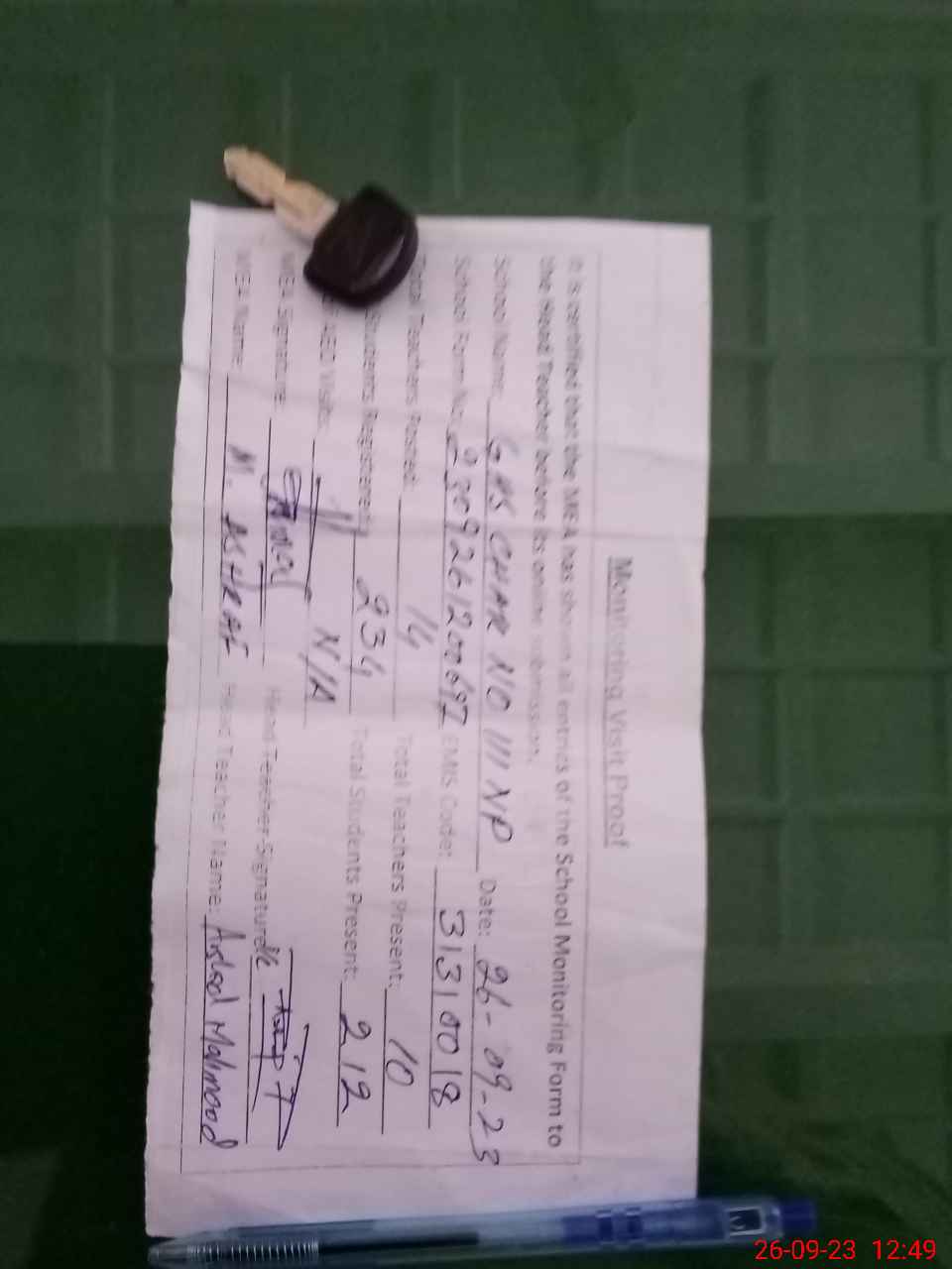 | Attendance Register | Head Teacher | MEA with School | Visit Proof |