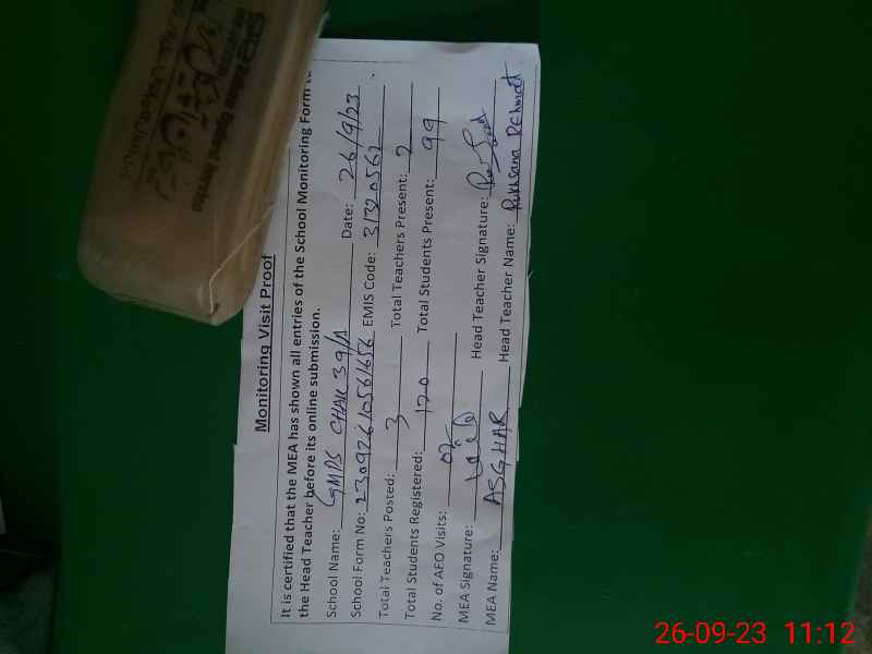 | EMIS Code: 31320562 | Name of School: GMPS 39/A | |||