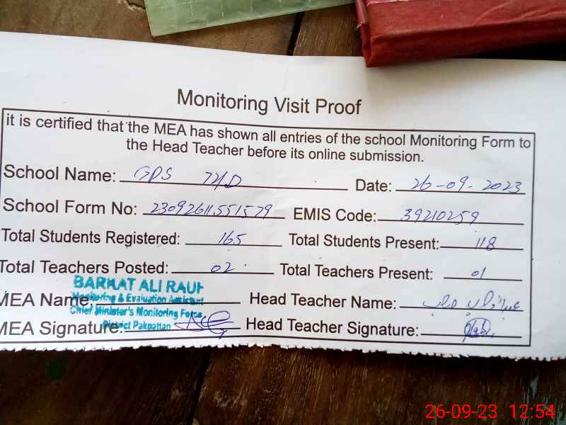 | EMIS Code: 39210259 | Name of School: GPS CHAK NO. 72 D | |||