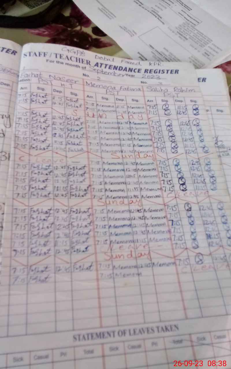 | Name: FA**** NA**** Designation: (School Headmaster's/Headmistress's) PST Phone/Cell Number: 03**** |