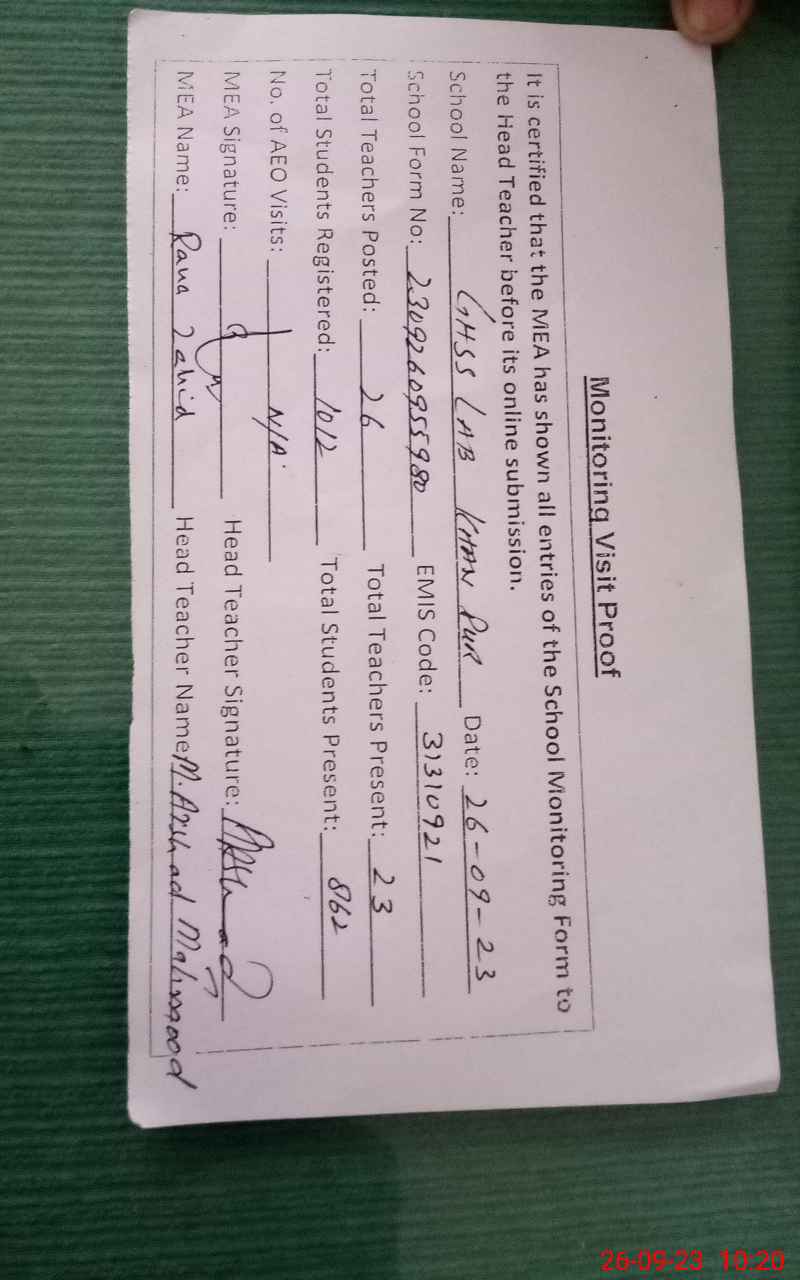 | Certified that this School was Inspected by the Undersigned MEA/DMO Today and the Information Stated Above is as Per Record. | |||||