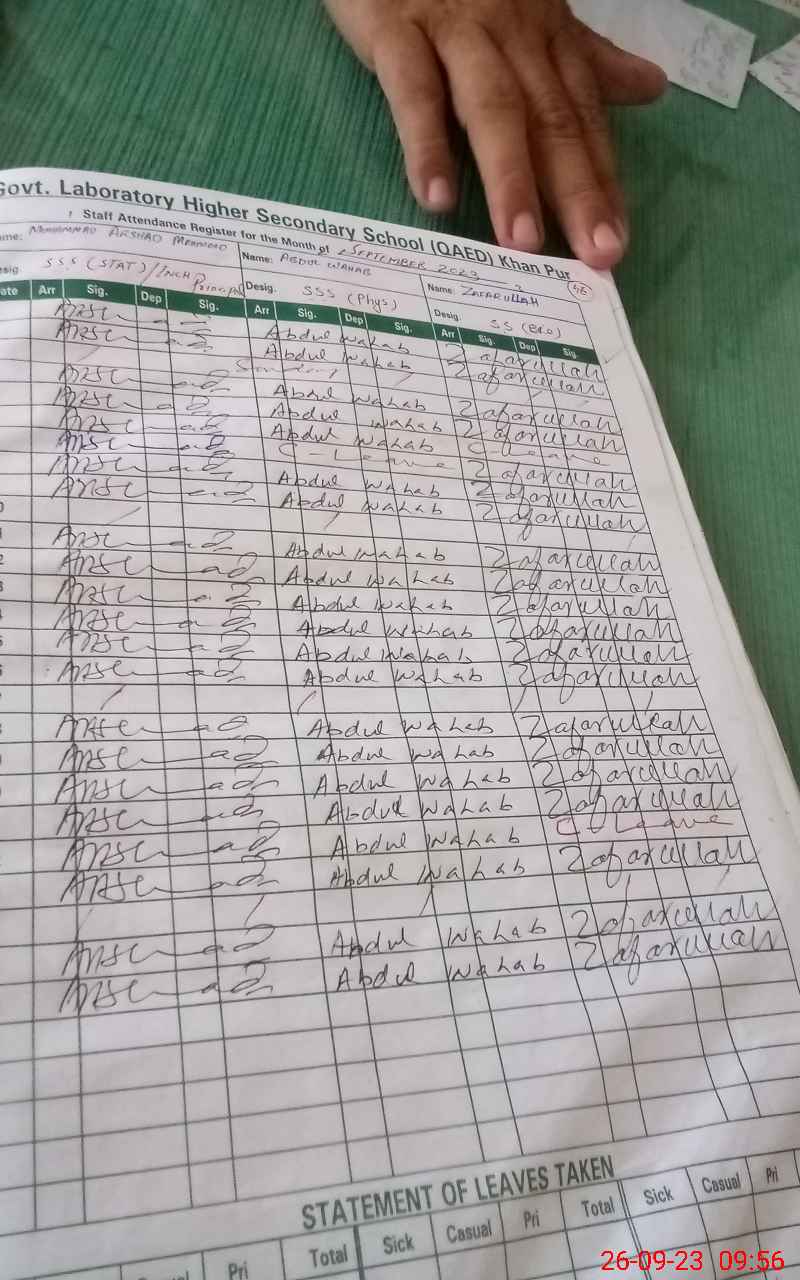 | CNIC | Full Name | Designation | R/C | Absence During Last Calender Month |