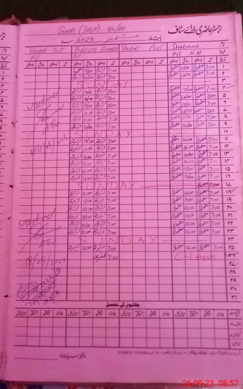 | Name: Sh**** Designation: (School Headmaster's/Headmistress's) PST Phone/Cell Number: 03**** |