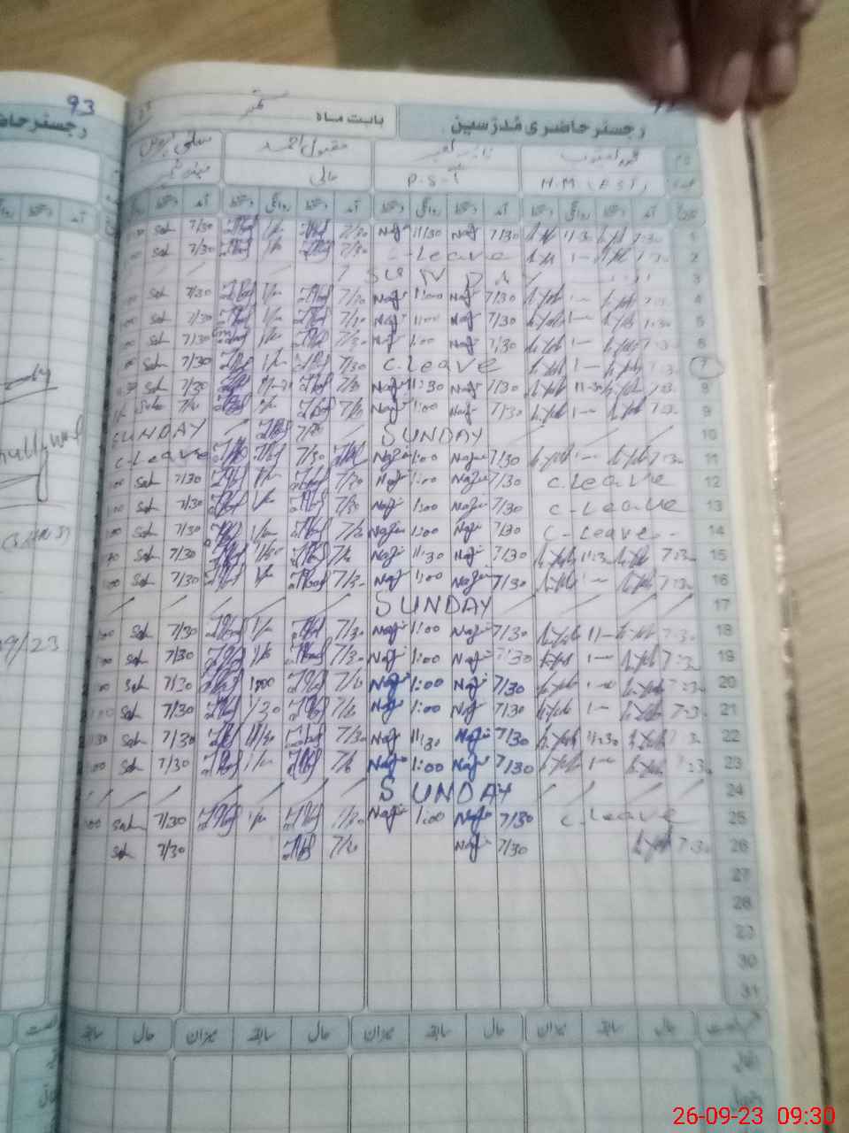 | CNIC | Full Name | Designation | R/C | Absence During Last Calender Month |