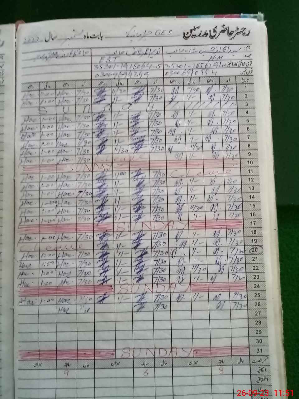| Name: Sy**** Ij**** Hu**** Sh**** Designation: (School Headmaster's/Headmistress's) SST Phone/Cell Number: 03**** |