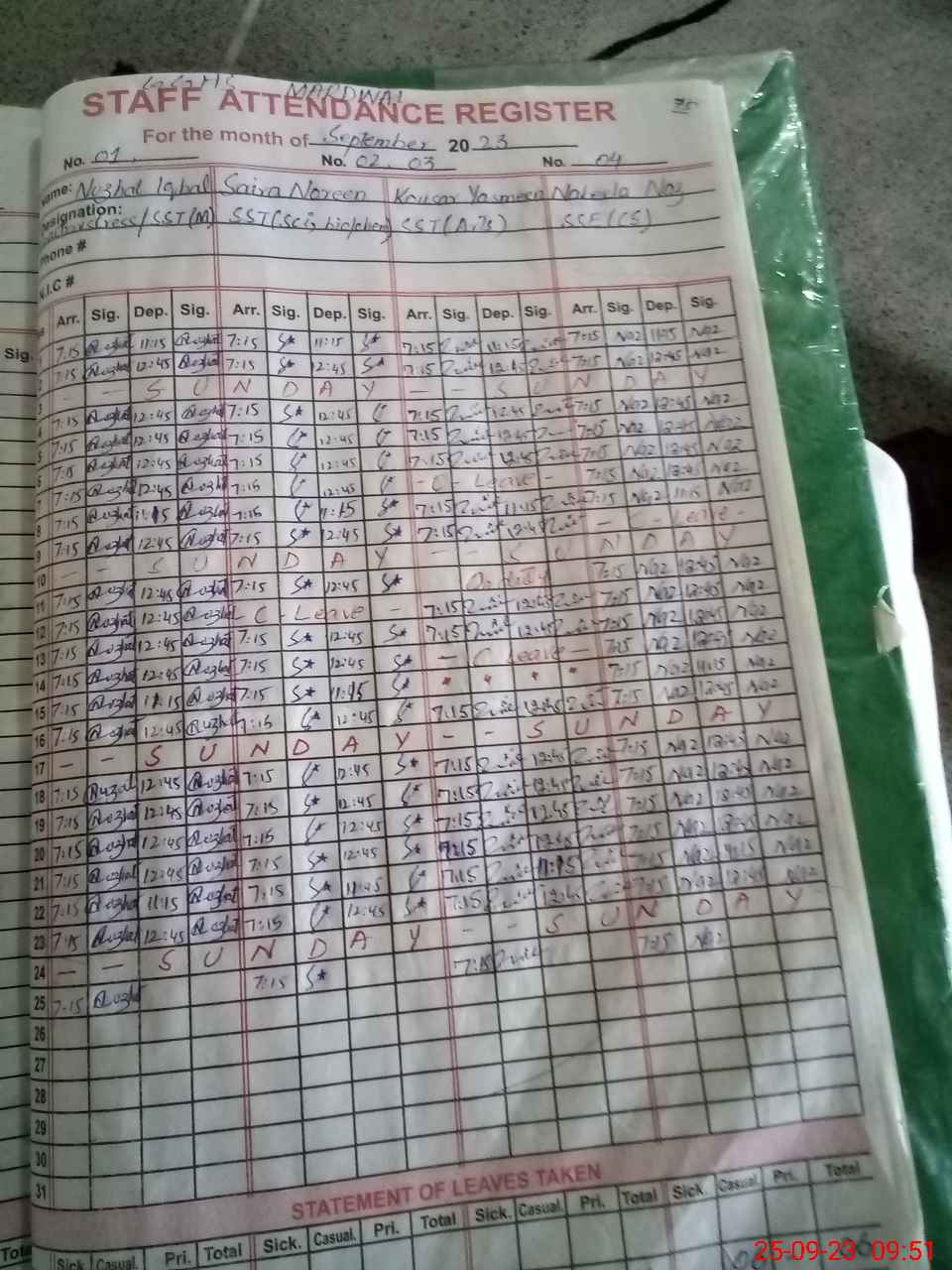 | Name: Nu**** Iq**** Designation: (School Headmaster's/Headmistress's) SST Sc,Math,Phy Phone/Cell Number: 03**** |