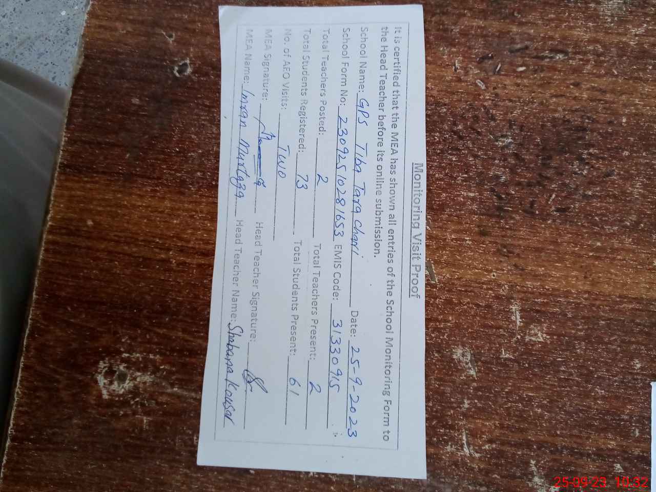 | EMIS Code: 31330915 | Name of School: GPS TIBBA TARAI CHERI | |||