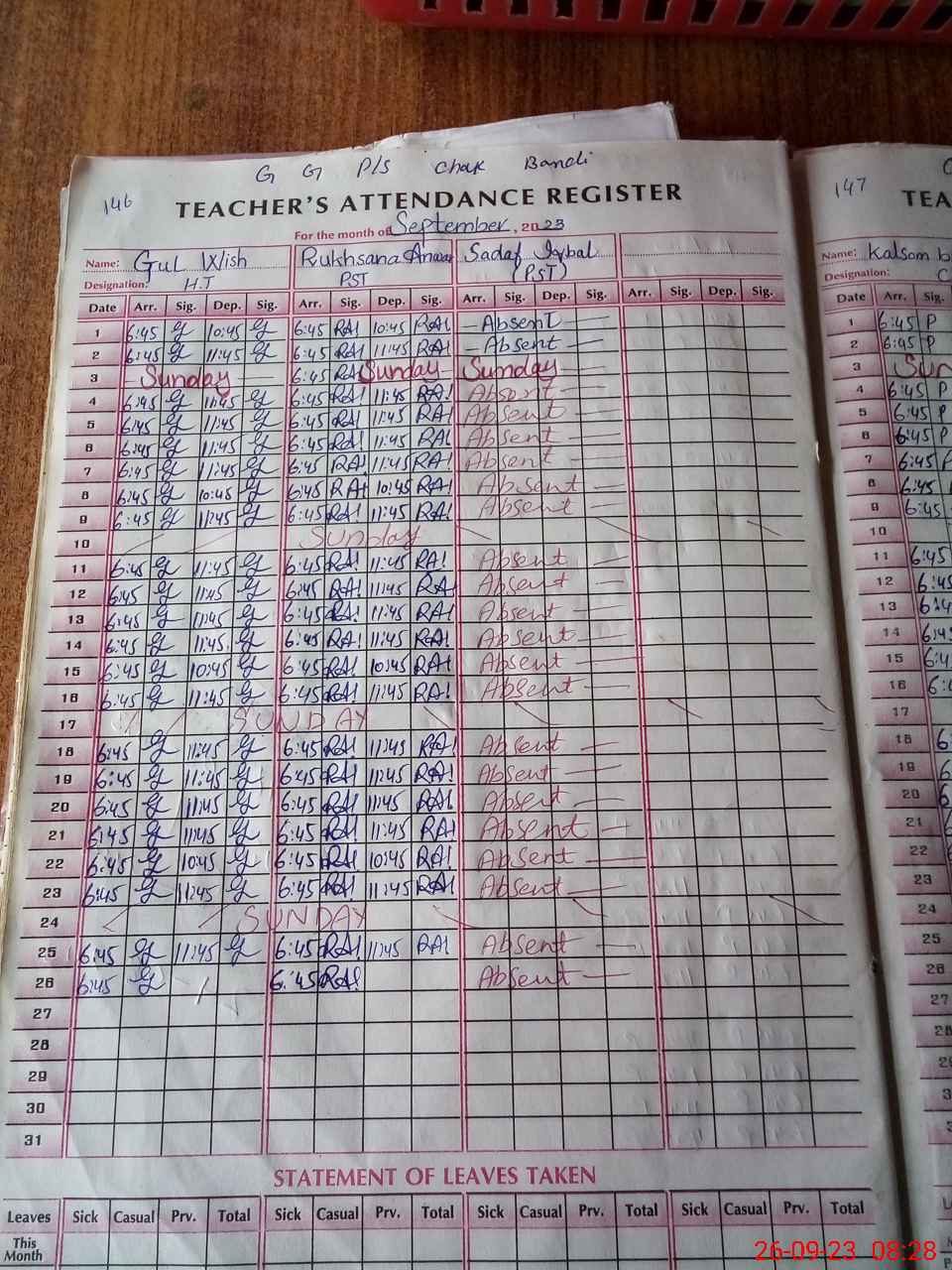 | 31**** | Sa**** Iq**** | 2 | 2 | 0 | 0 | 0 | 0 | 0 | 0 | 0 | 0 | 0 | Absent (Un-Authorized) |