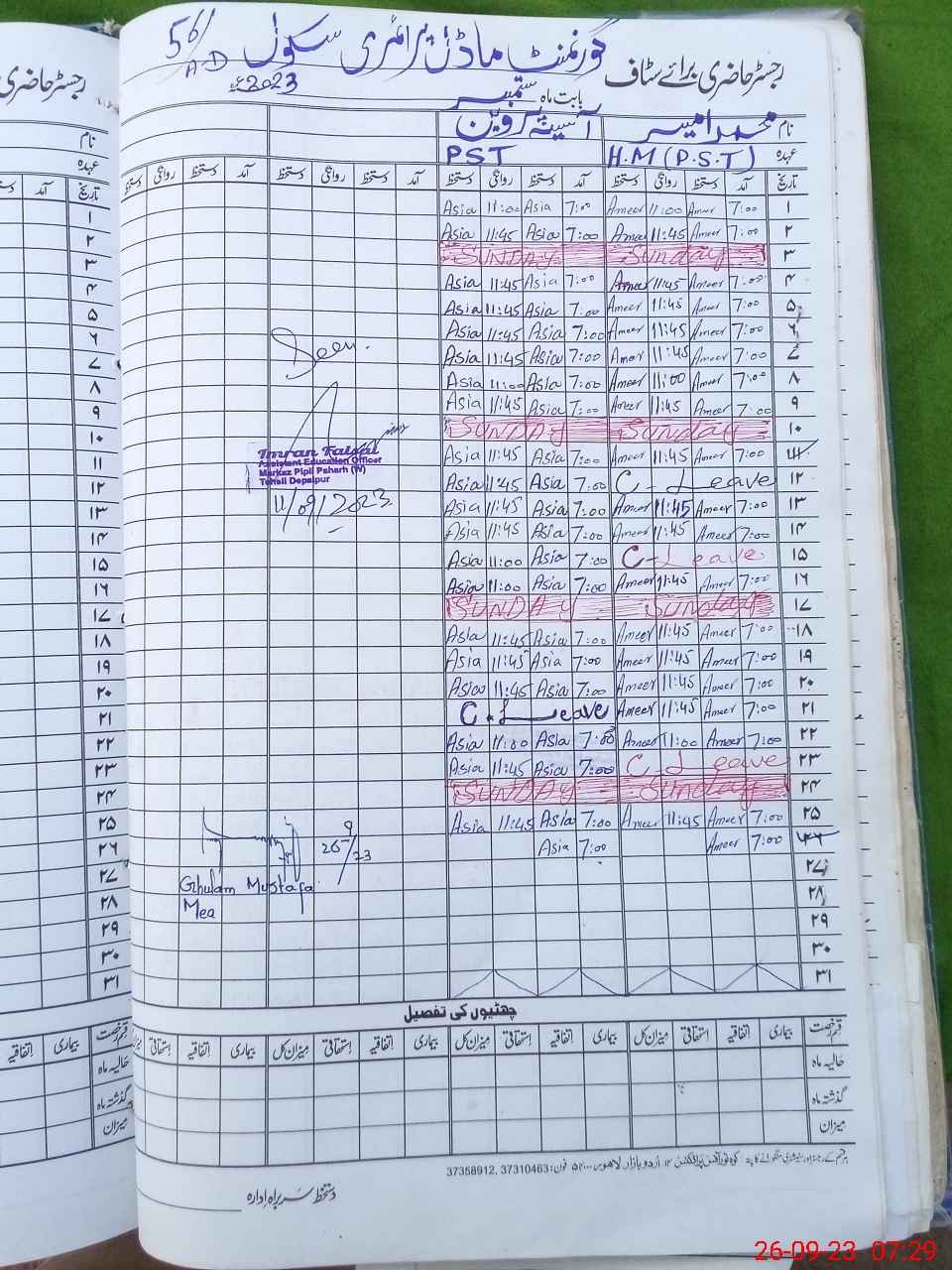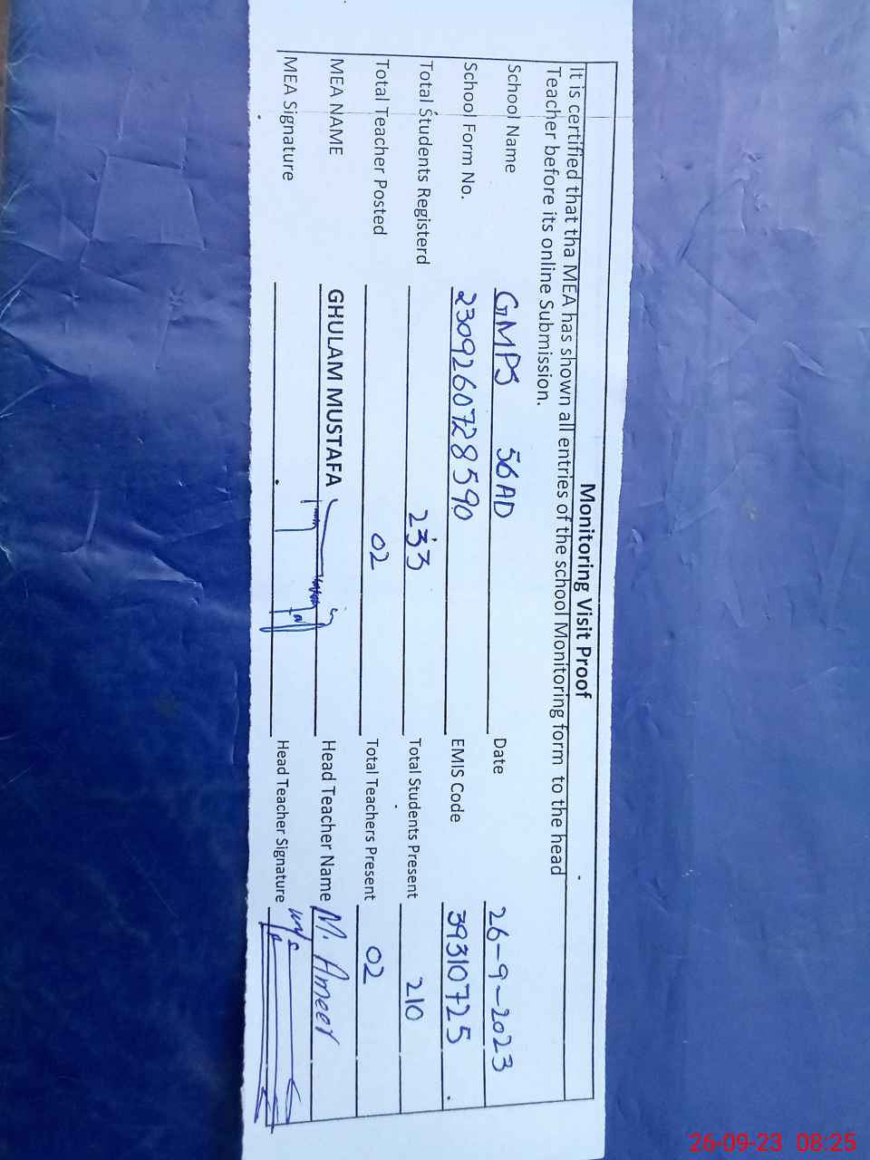 | Name: MU**** AM**** Designation: (School Headmaster's/Headmistress's) PST Phone/Cell Number: 03**** |