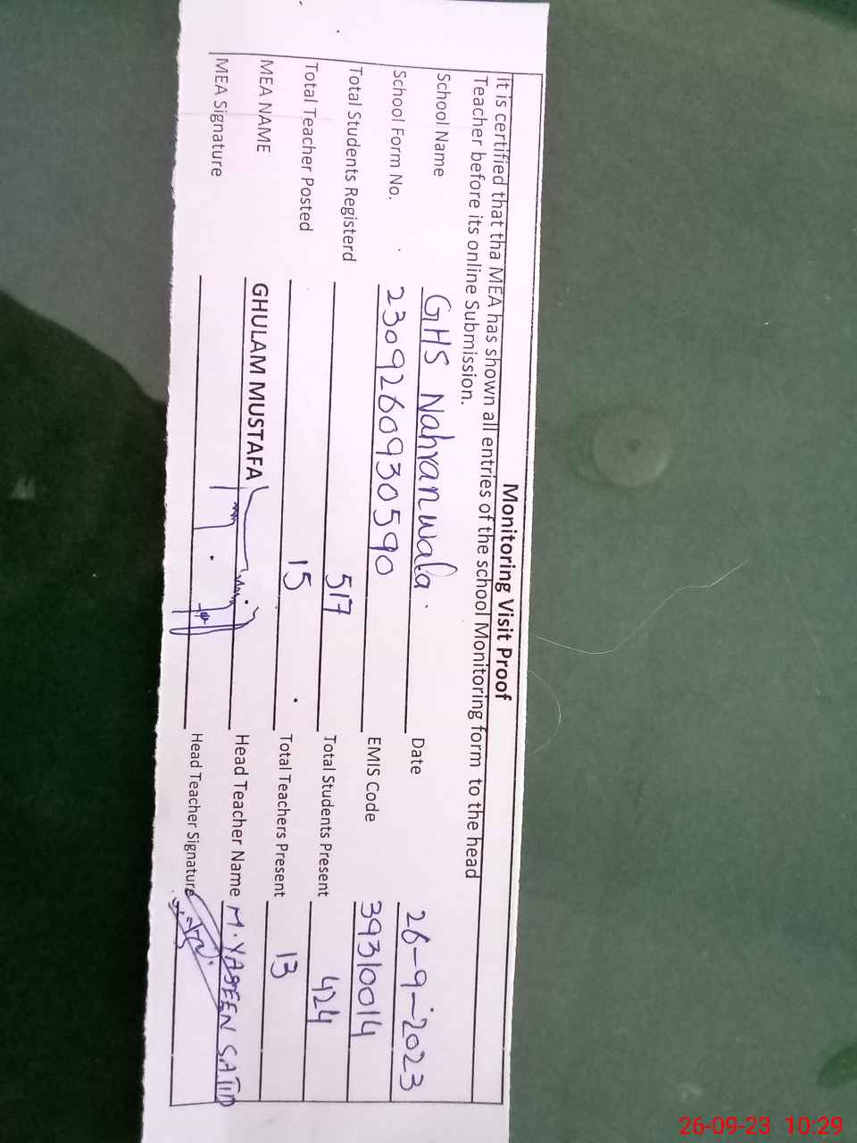 | EMIS Code: 39310014 | Name of School: GHS NEHRANWALA | |||