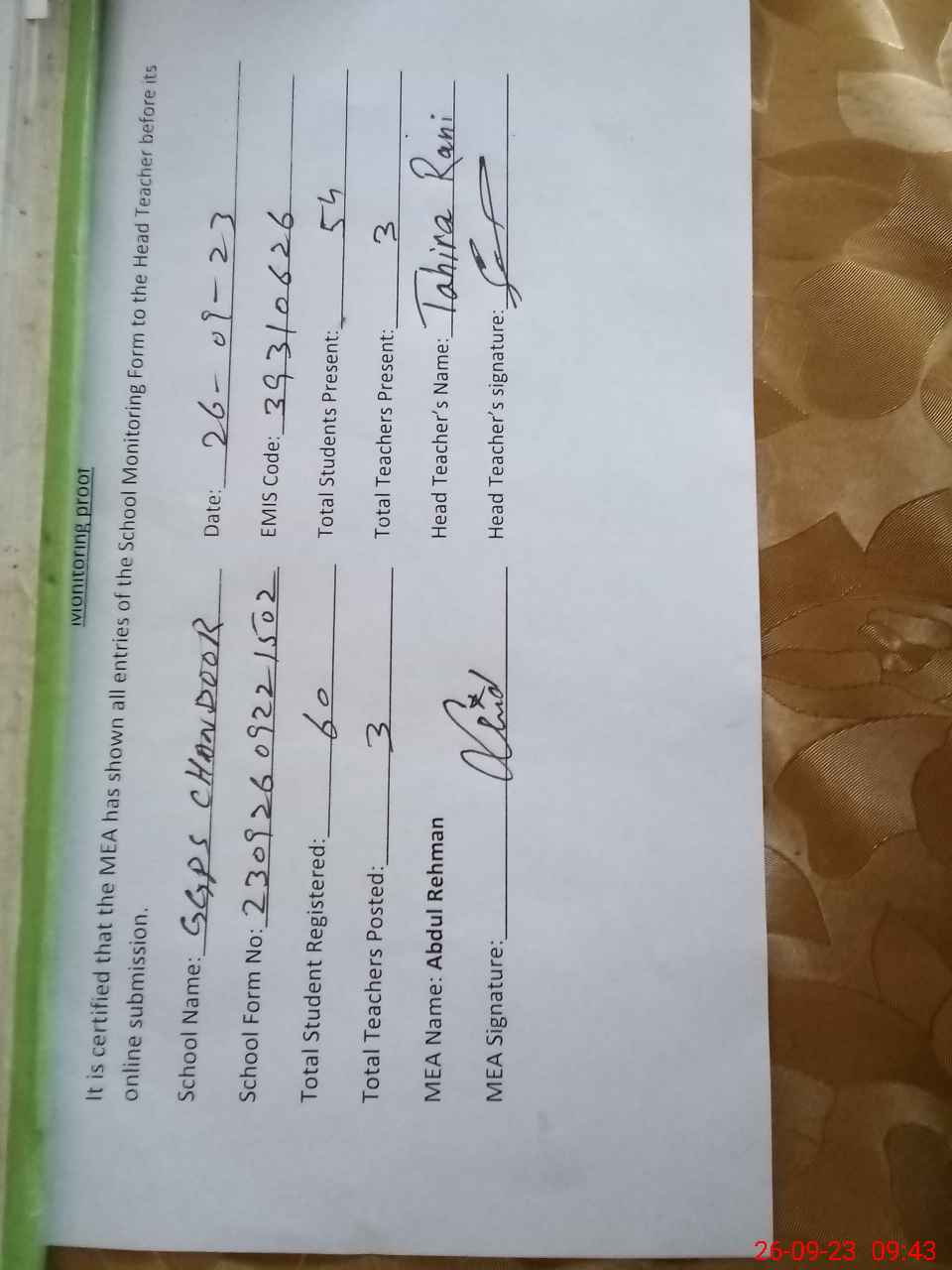 | EMIS Code: 39310626 | Name of School: GGPS CHANDOOR VIA BASEER PUR | |||
