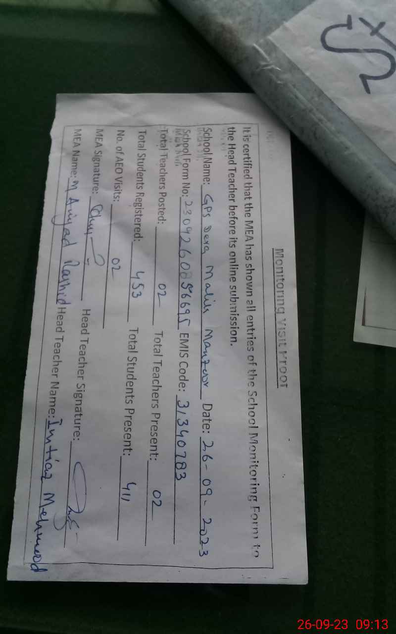 | Attendance Register | Head Teacher | MEA with School | Visit Proof |