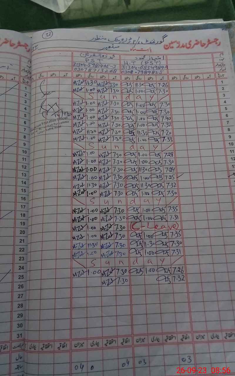 | Name: Im**** Me**** Designation: (School Headmaster's/Headmistress's) PST Phone/Cell Number: 03**** |