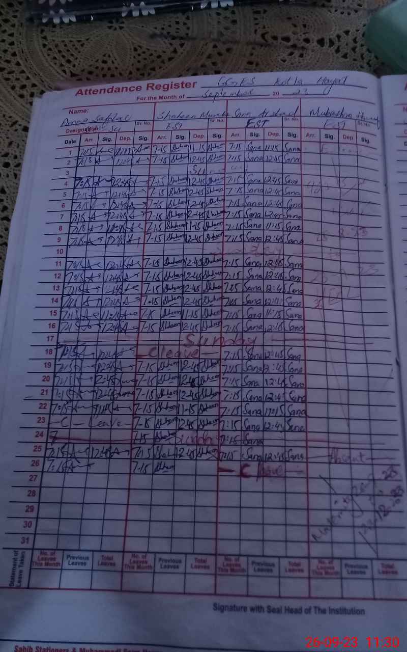 | 31**** | Ya**** Ra**** | C IV | Contract | 0 | 0 | 31 | 0 | 0 | 0 | 0 | 0 | 0 | Absent (Un-Authorized) |