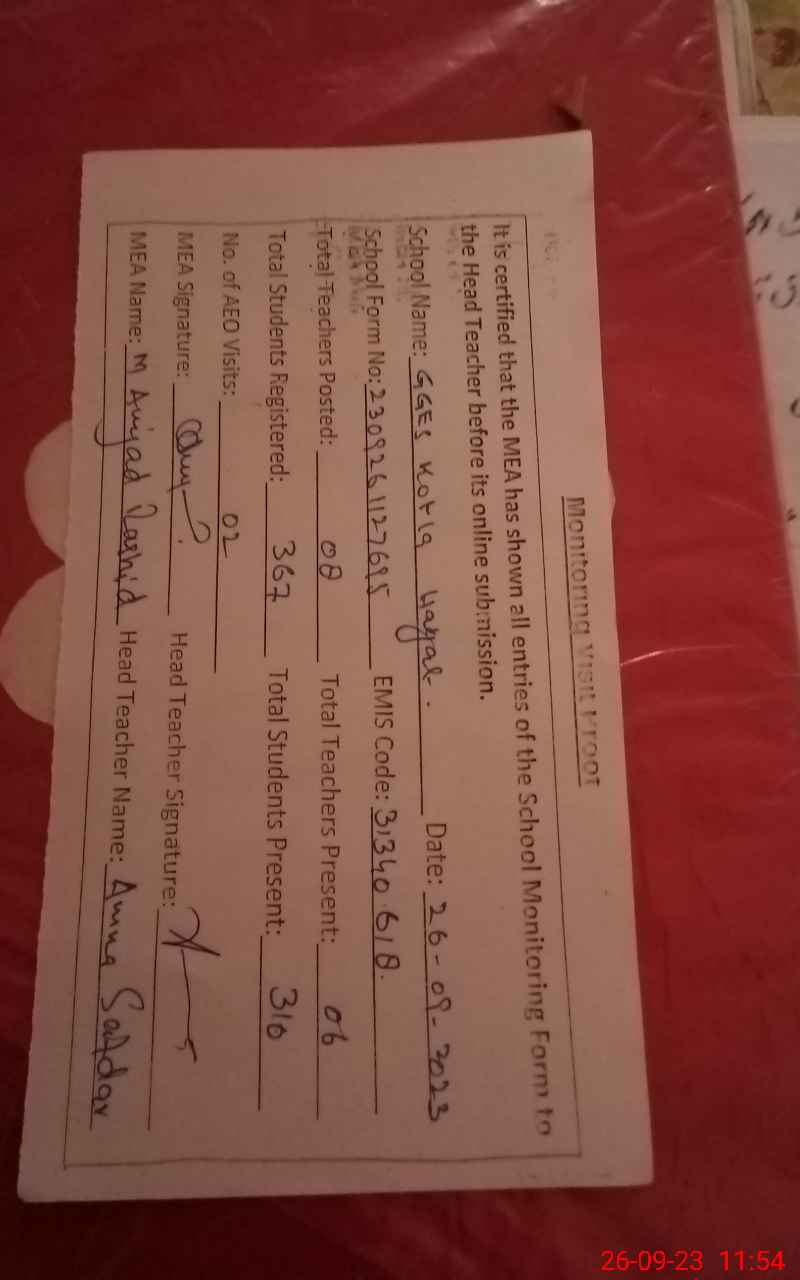 | EMIS Code: 31340618 | Name of School: GGES KOTLA HAYAT | |||