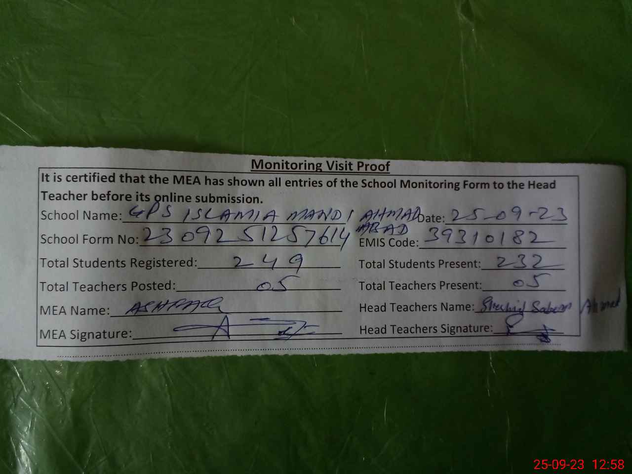 | EMIS Code: 39310182 | Name of School: GPS ISLAMIA AHMED ABAD | |||