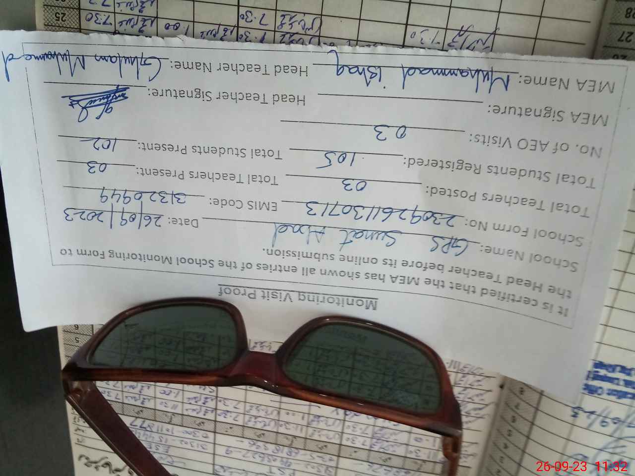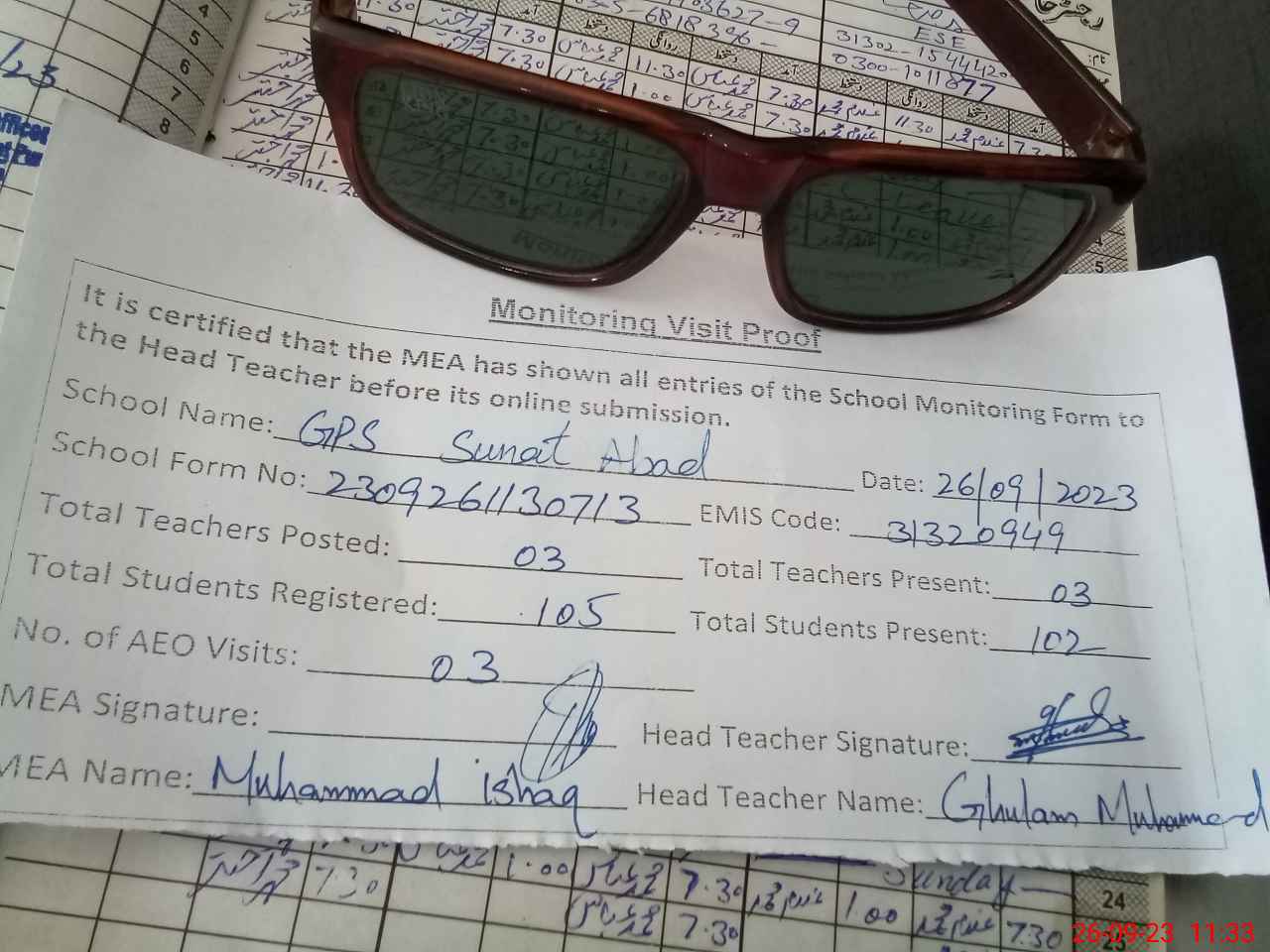 | Attendance Register | Head Teacher | MEA with School | Visit Proof |