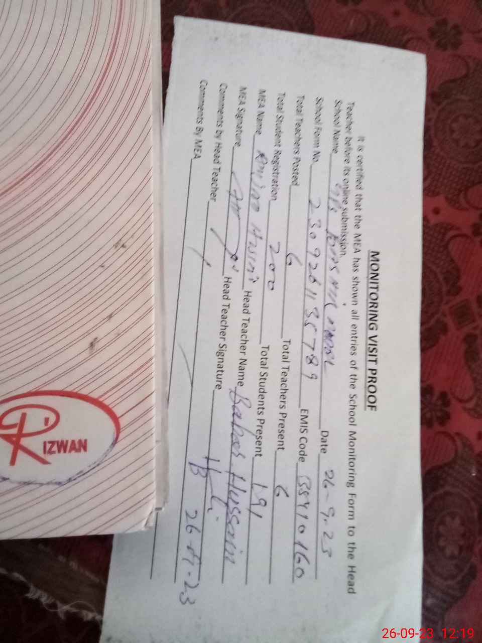 | Certified that this School was Inspected by the Undersigned MEA/DMO Today and the Information Stated Above is as Per Record. | |||||
