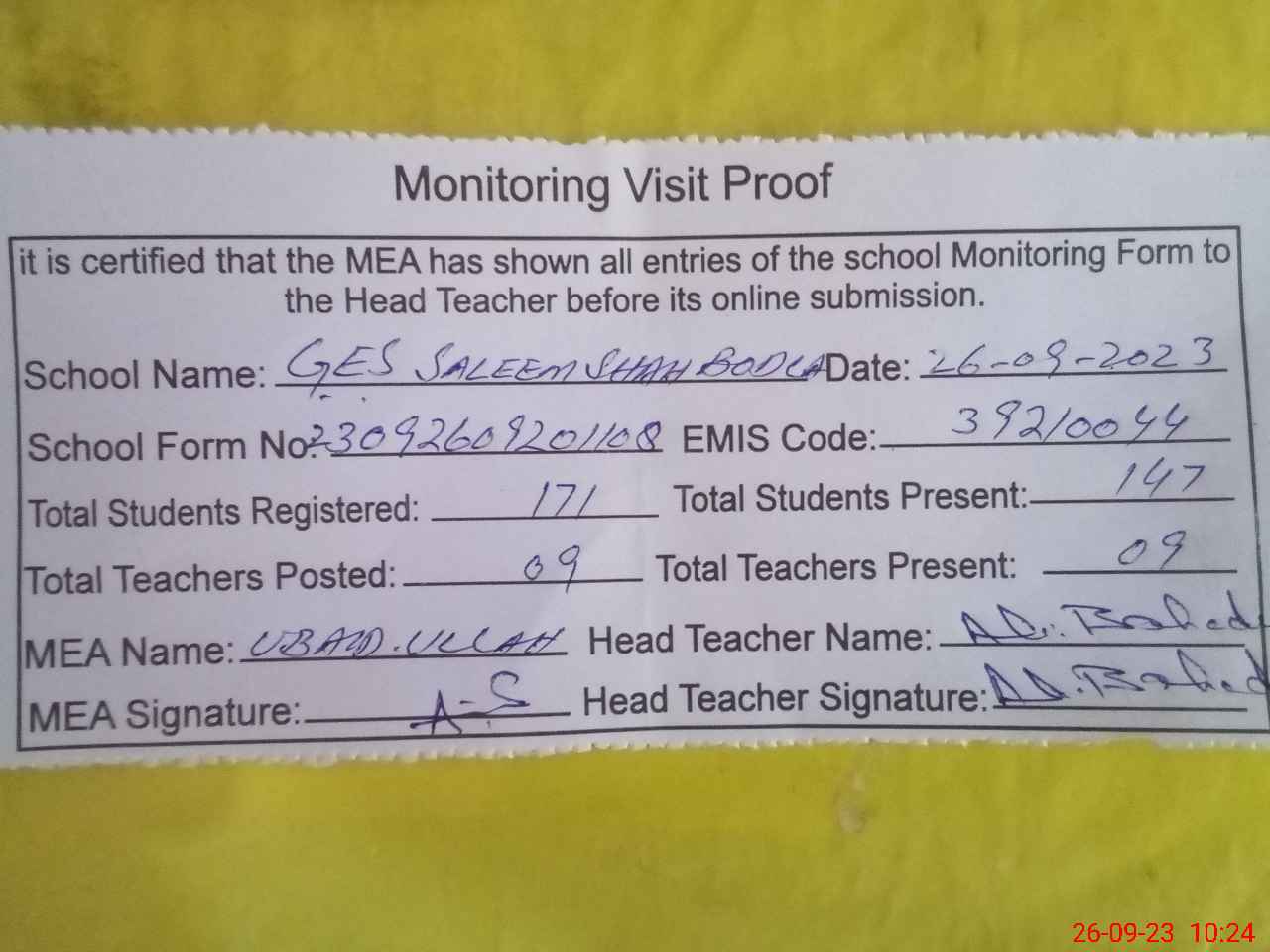 | EMIS Code: 39210044 | Name of School: GES SALEEM SHAH BODLA | |||