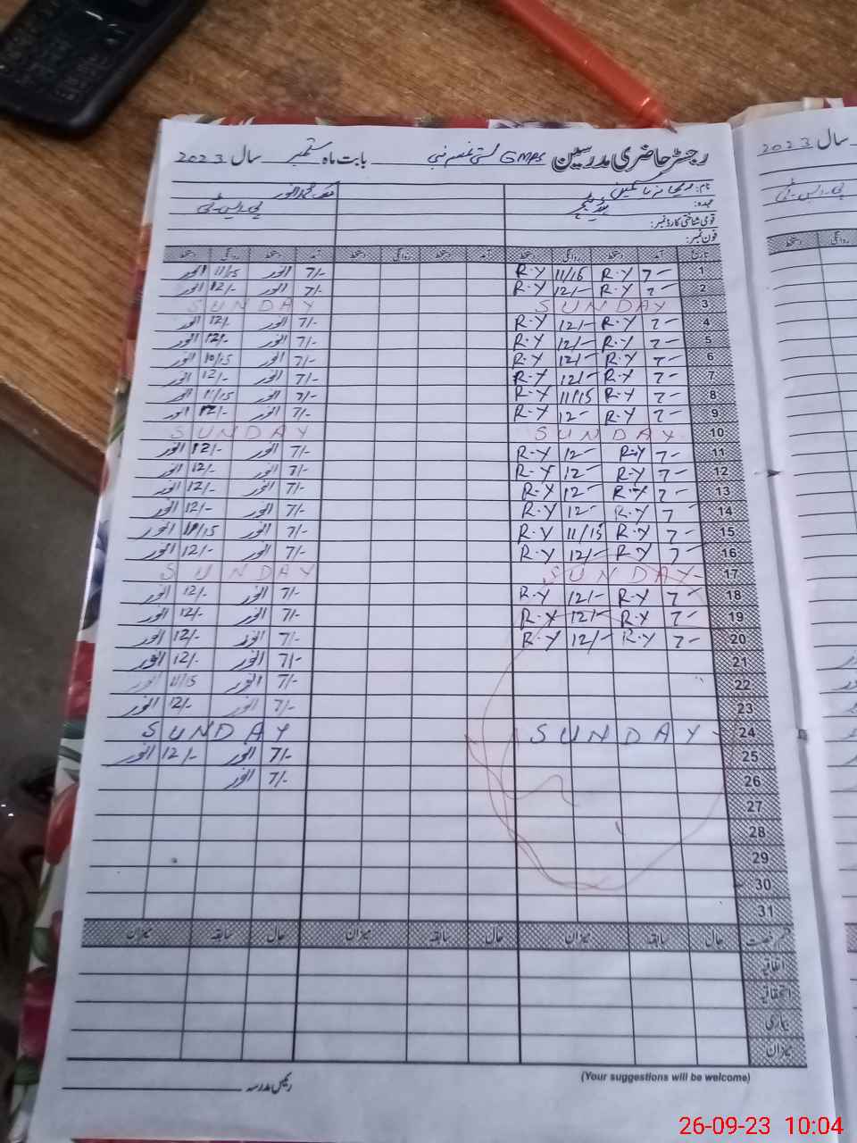 | Remarks (Use Separate Page if Required): Teacher Rehana Yasmeen is absent since last six days | |||||