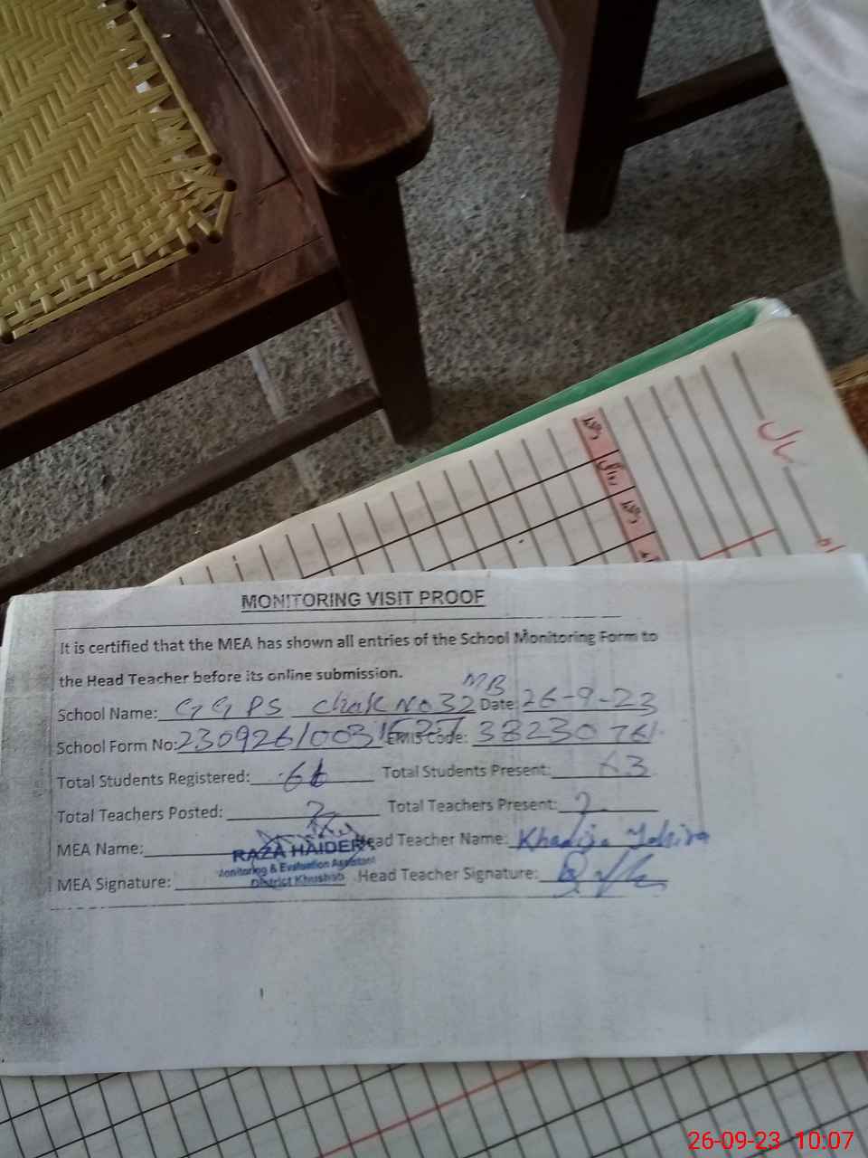 | Attendance Register | Head Teacher | MEA with School | Visit Proof |