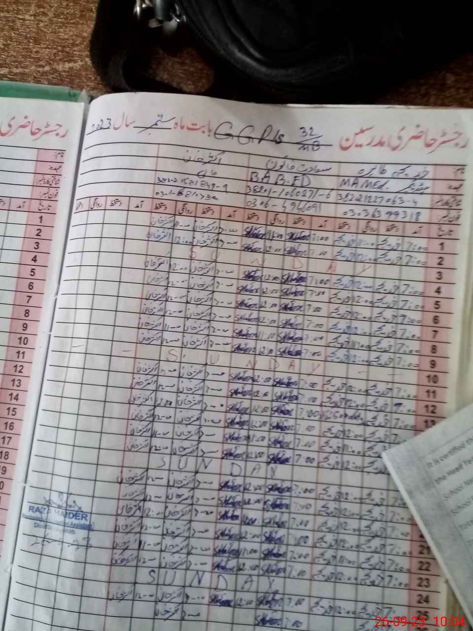 | Name: Kh**** Ta**** Designation: (School Headmaster's/Headmistress's) PST/PTC/JV Phone/Cell Number: 03**** |