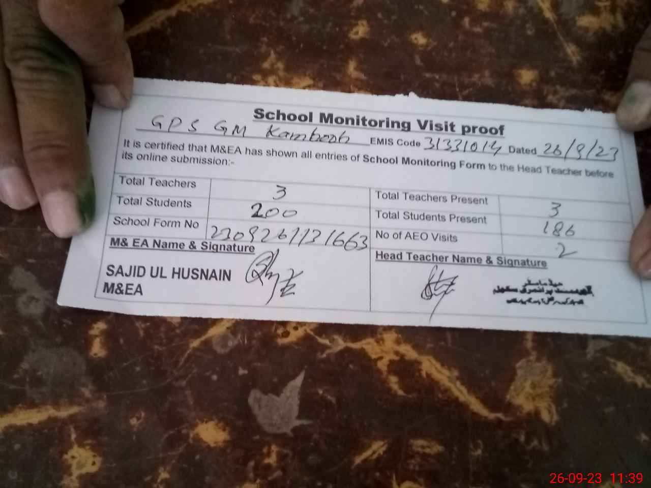 | EMIS Code: 31331014 | Name of School: GPS GHULAM MUHAMMAD KOMBOO | |||