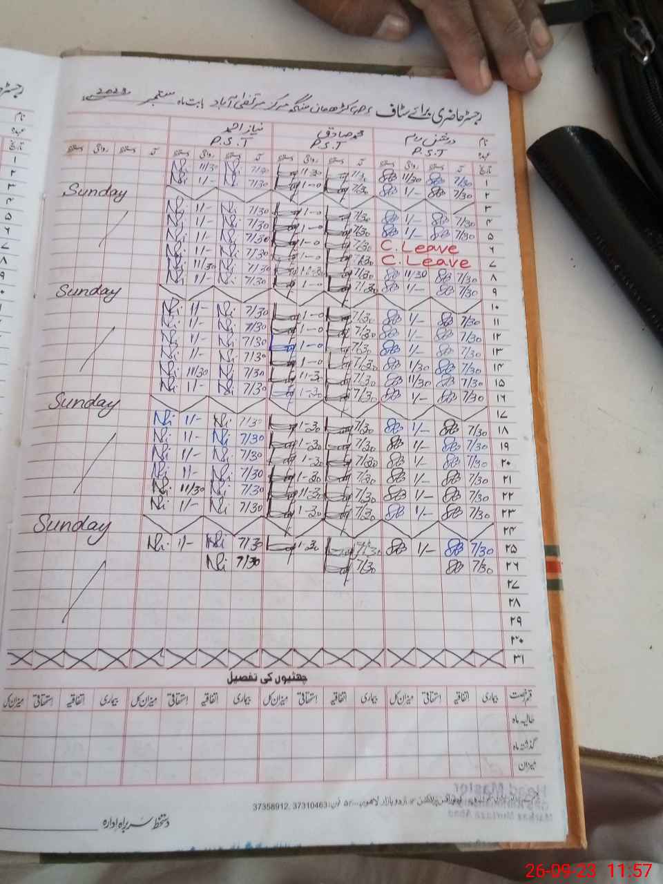 | CNIC | Full Name | Designation | R/C | Absence During Last Calender Month |