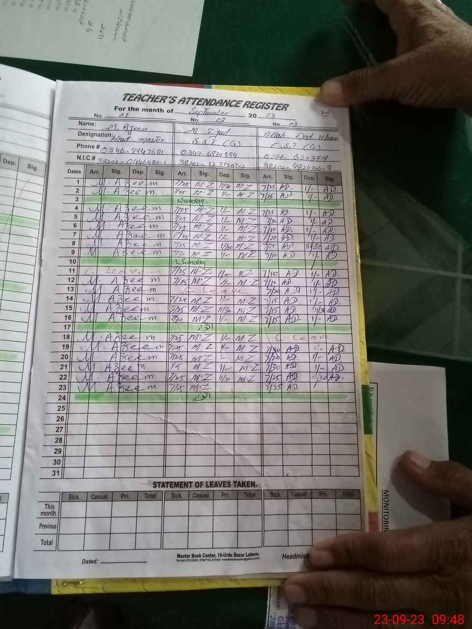 | Name: Mu**** Az**** Designation: (School Headmaster's/Headmistress's) Headmaster Phone/Cell Number: 03**** |