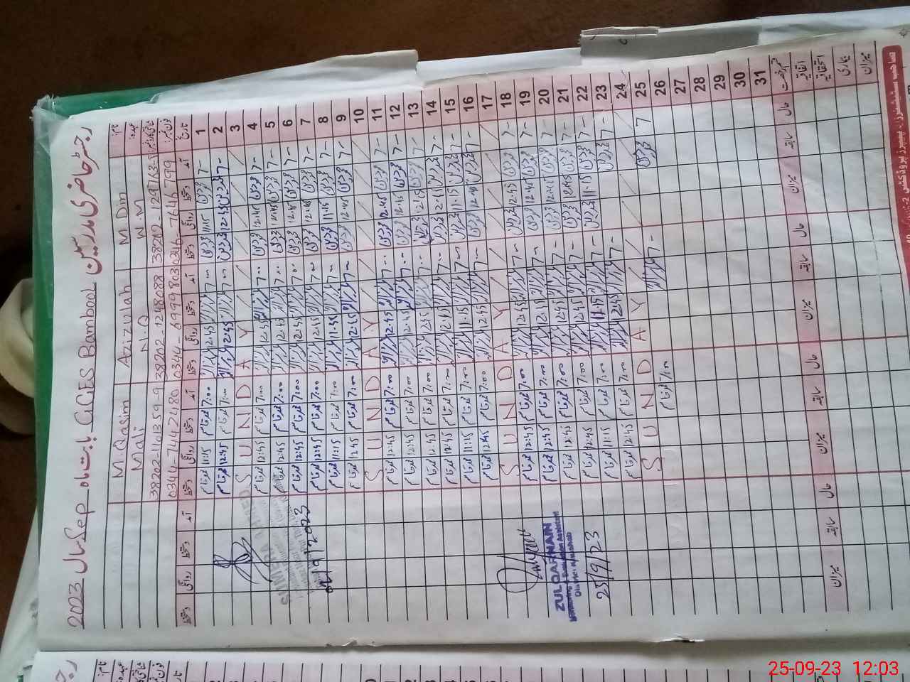 | Name: SU**** IR**** Designation: (School Headmaster's/Headmistress's) SST(PHY.MATH Phone/Cell Number: 03**** |