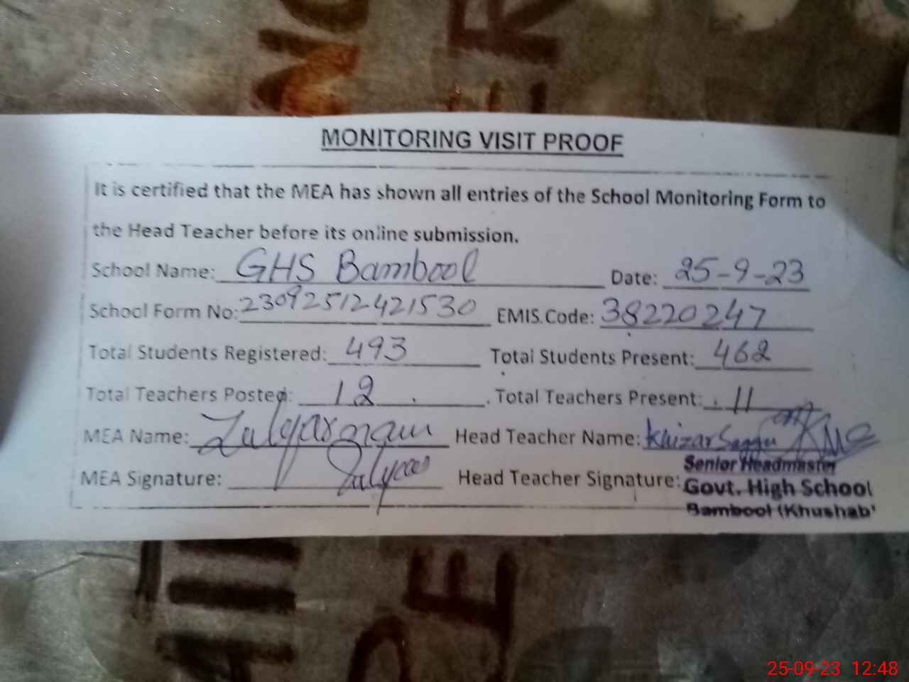 | EMIS Code: 38220247 | Name of School: GHS BAMBOOL | |||