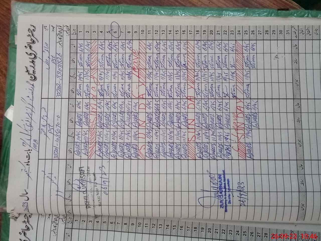 | CNIC | Full Name | Designation | R/C | Absence During Last Calender Month |