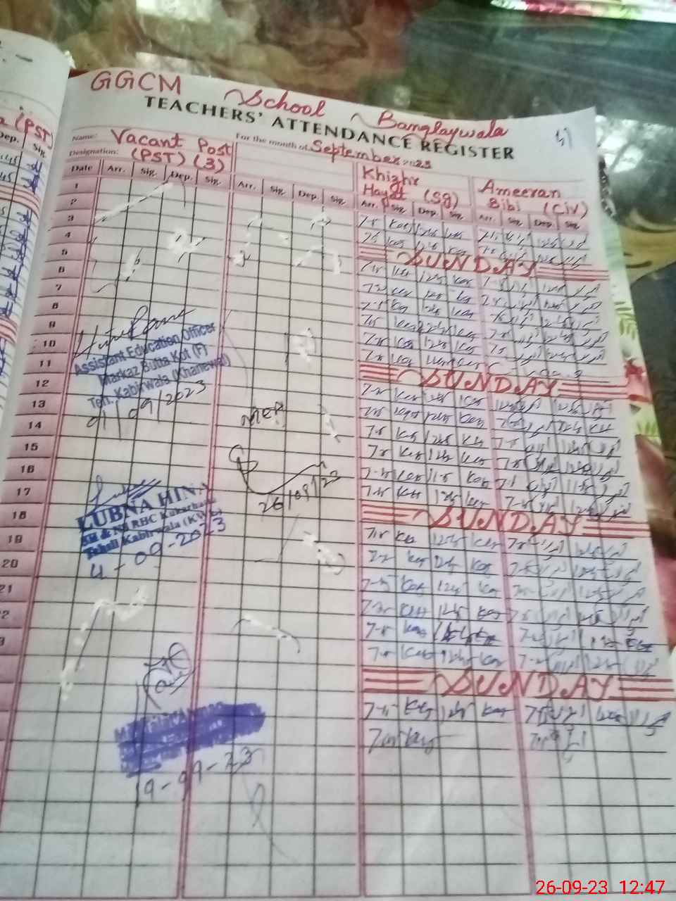 | EMIS Code: 36410382 | Name of School: GGCMS BANGLAY WALA, P/O KUKKAR HATTA, KABIRWALA | |||