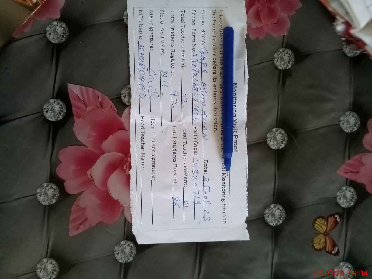 | EMIS Code: 31320719 | Name of School: GGPS ASAD KHAN | |||