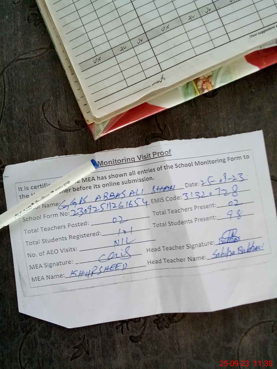 | EMIS Code: 31320728 | Name of School: GGPS ABBAS ALI SHAH | |||