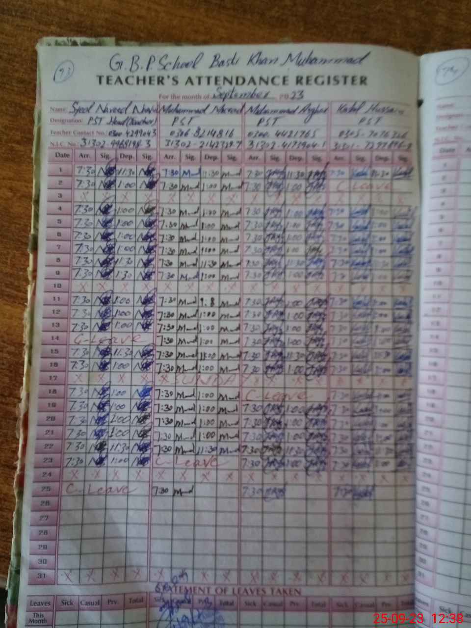 | Name: SY**** MU**** NA**** HU**** NA**** Designation: (School Headmaster's/Headmistress's) PST Phone/Cell Number: 03**** |