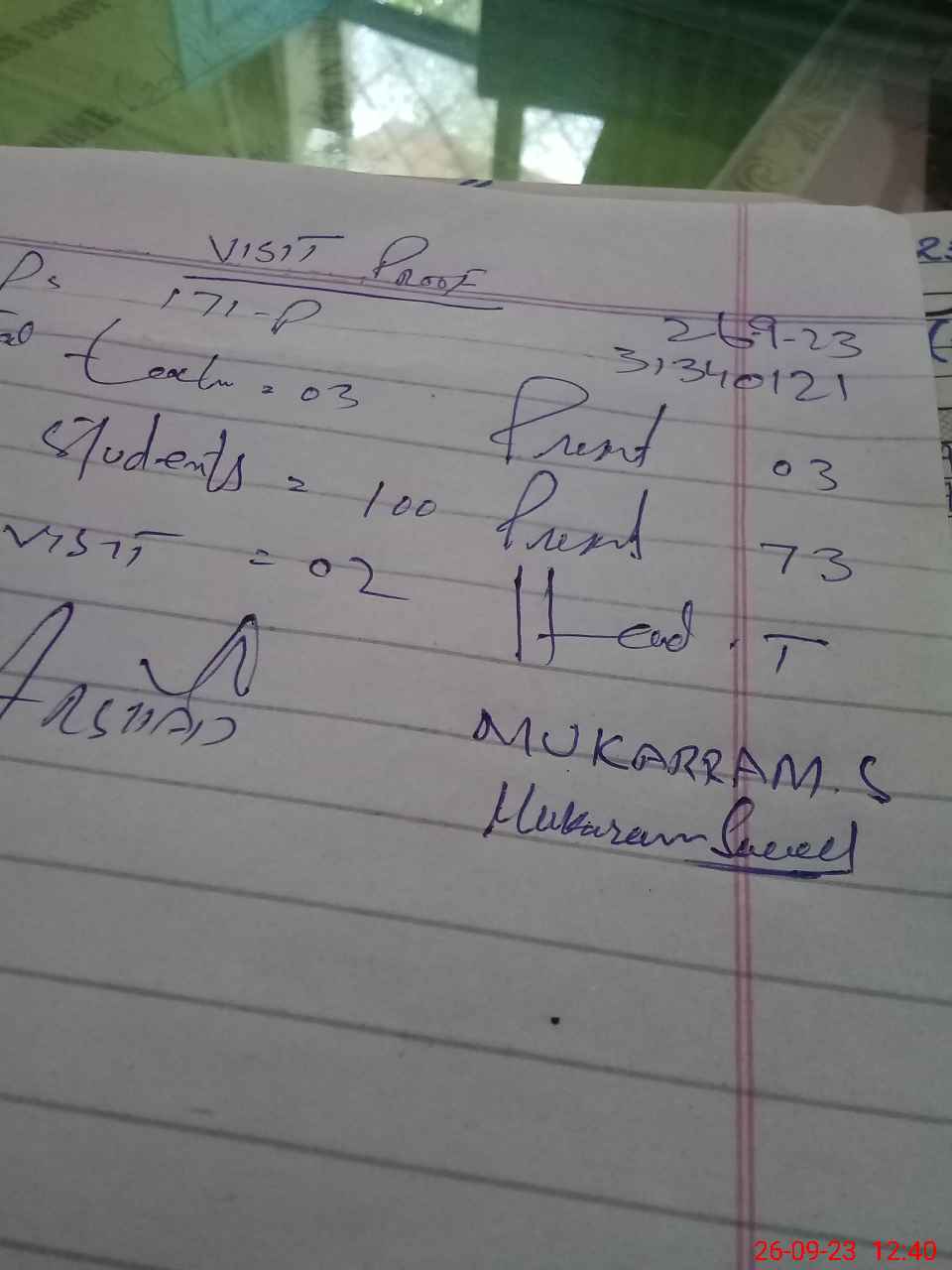 | Attendance Register | Head Teacher | MEA with School | Visit Proof |