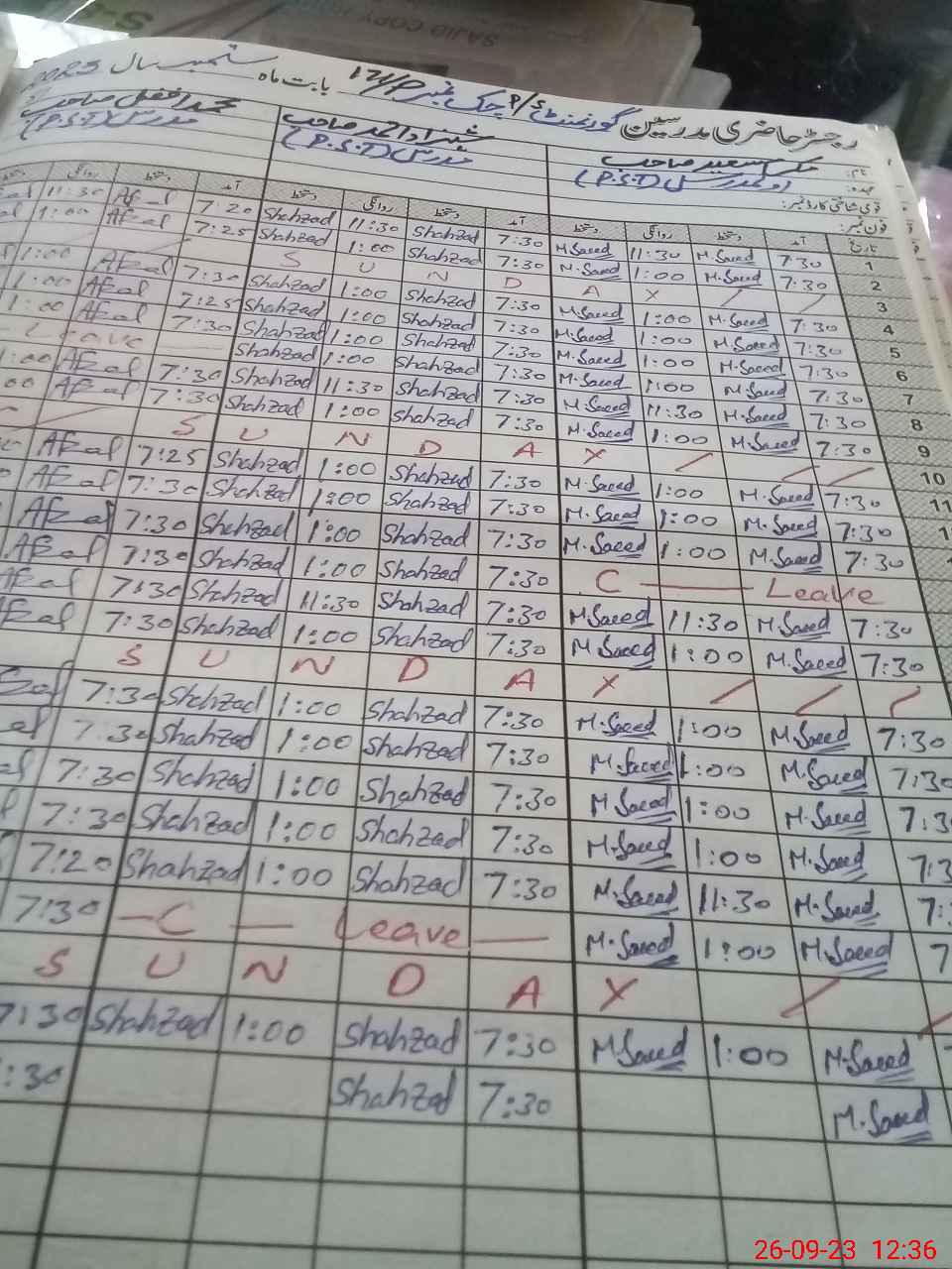| CNIC | Full Name | Designation | R/C | Absence During Last Calender Month |
