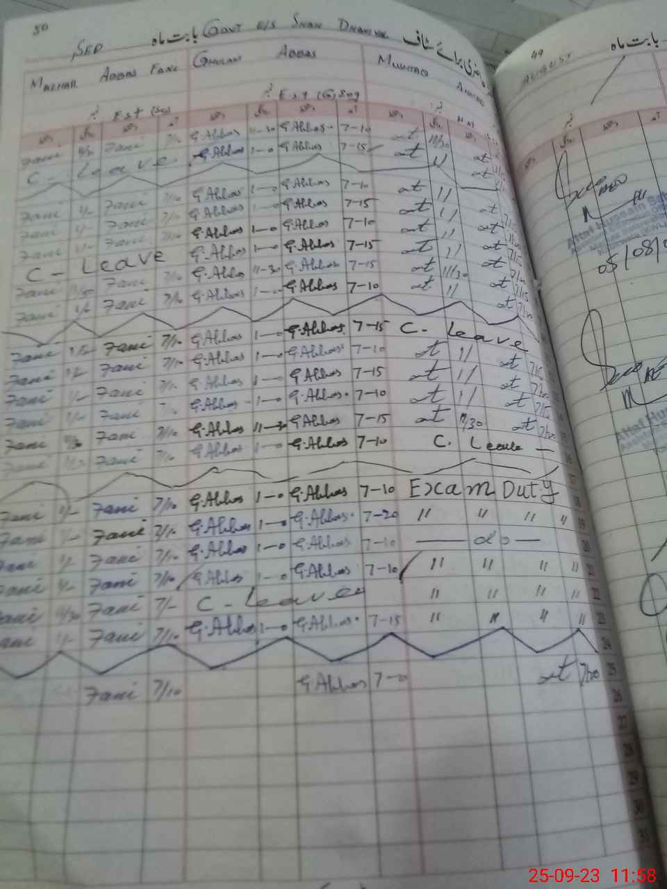 | Leave | Duty | Absent | Maternity | Medical | Ex- Pak |