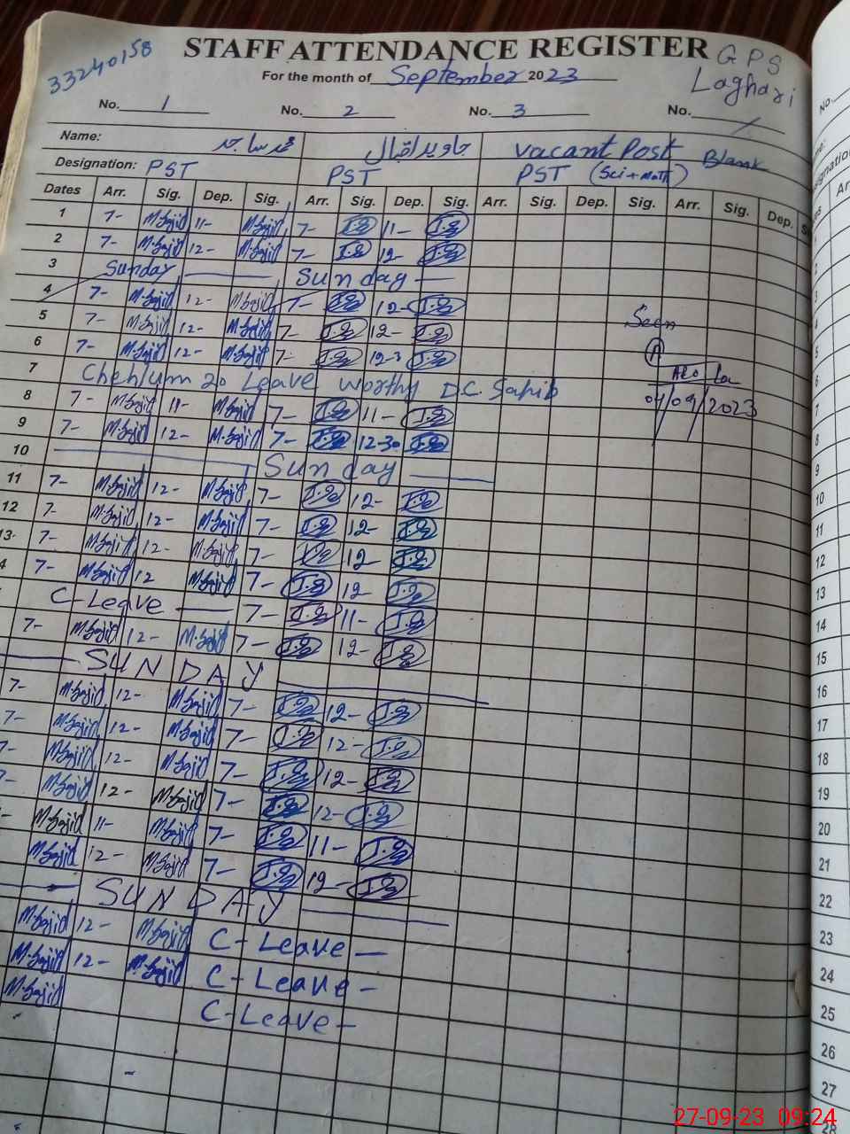 | Name: MU**** SA**** Designation: (School Headmaster's/Headmistress's) PST Phone/Cell Number: 03**** |