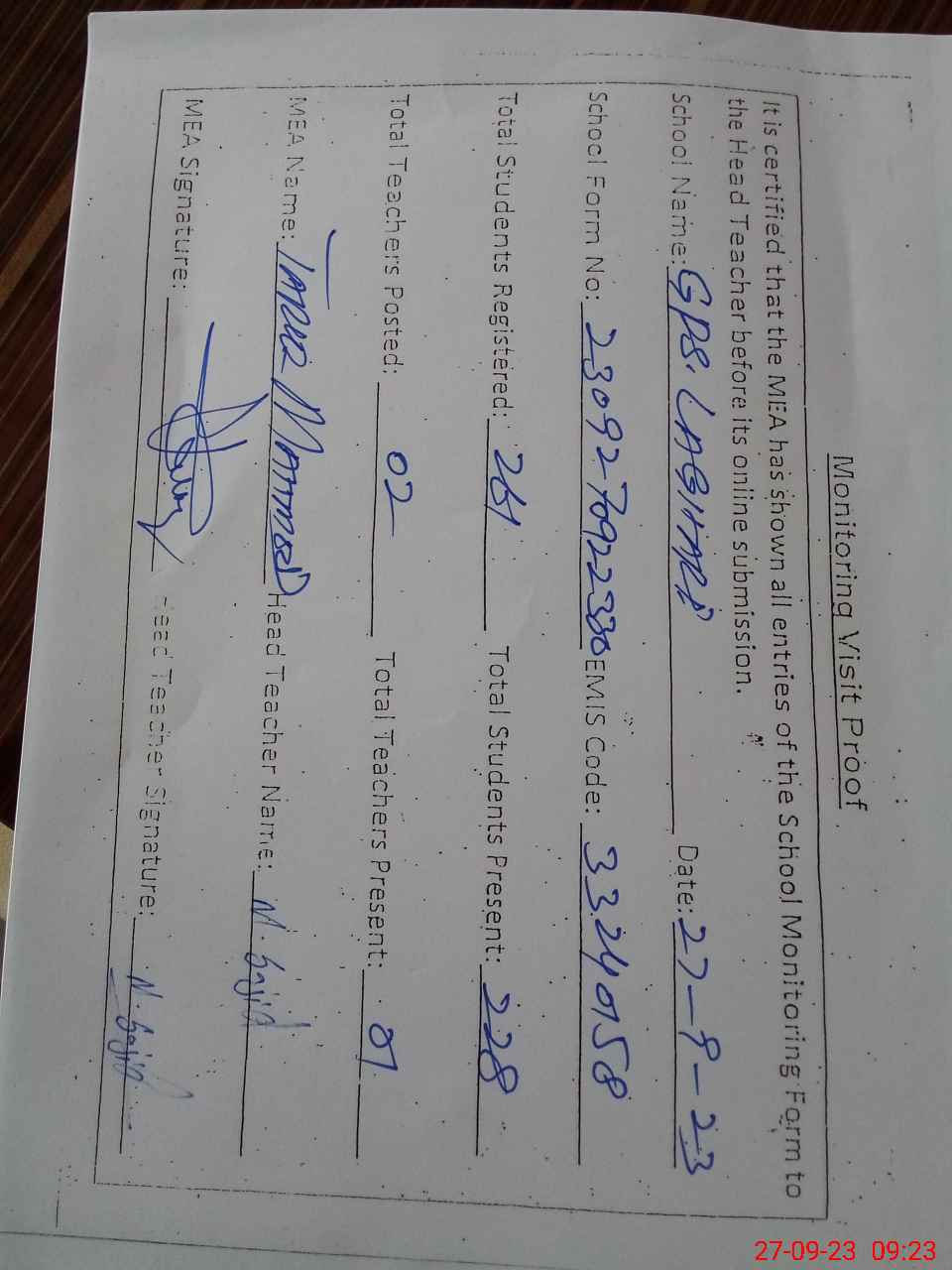| EMIS Code: 33240158 | Name of School: GPS LAGHARI | |||