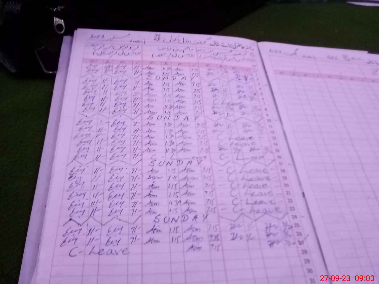| CNIC | Full Name | Designation | R/C | Absence During Last Calender Month |