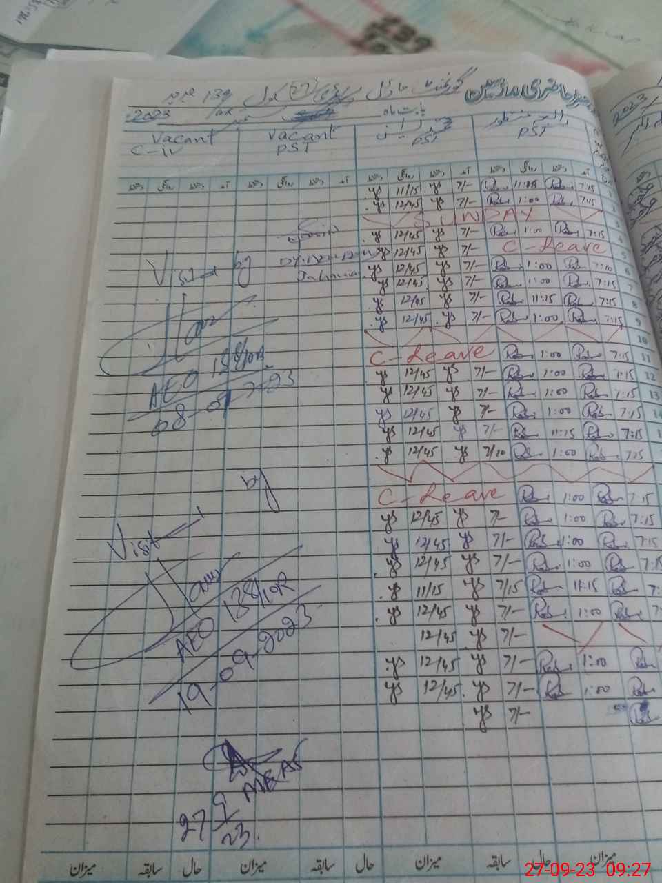 | Leave | Duty | Absent | Maternity | Medical | Ex- Pak |